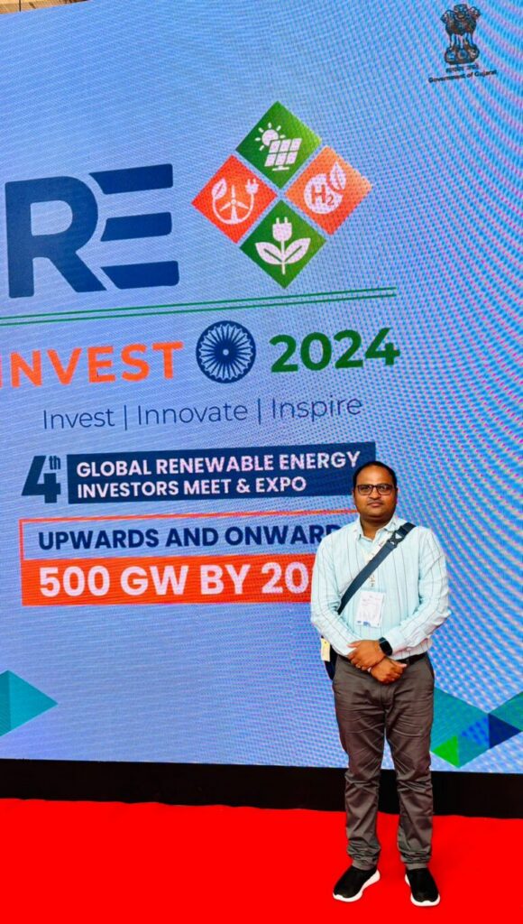During September 16–18, 2024, Smartgenx had the honor of participating in the 4th hashtagREINVEST2024 edition, which was attended by our research consultant, Dr. Vivek Prakash. This prestigious event was inaugurated by Prime Minister Narendra Modi in the presence of Ministry of New and Renewable Energy (MNRE) Minister Prahlad Joshi, and the Chief Ministers of Andhra Pradesh, Gujarat, Rajasthan, Goa, and Madhya Pradesh, along with many international delegates from countries such as Germany, Japan, Denmark, and more.